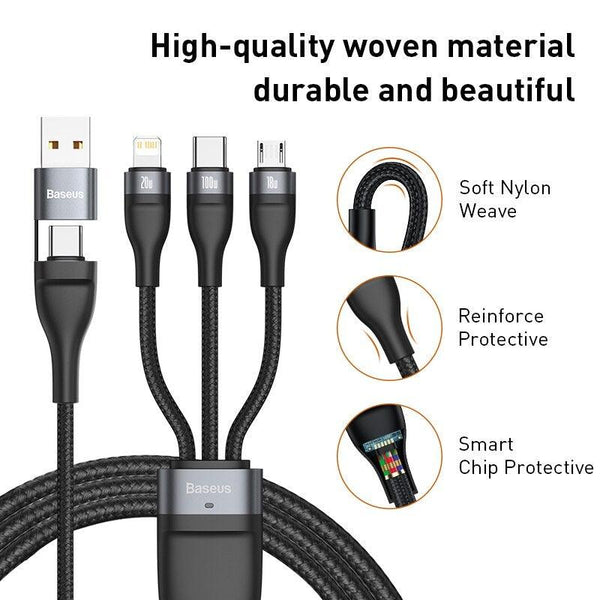 Imagine if you could be satisfied and content with your purchase. That can very much be your reality with the Baseus 1.2M 100W 3 in 1 USB/Type C QC4.0 Charging Cable.