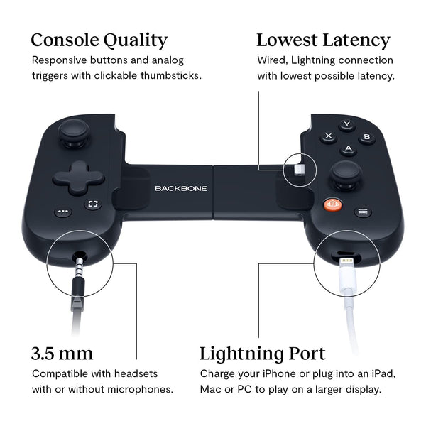 Lowest latency, Pass-Through Charging & 3.5MM Headset Jack: Connects to your iPhone's Lightning port for ultra-responsive gameplay.