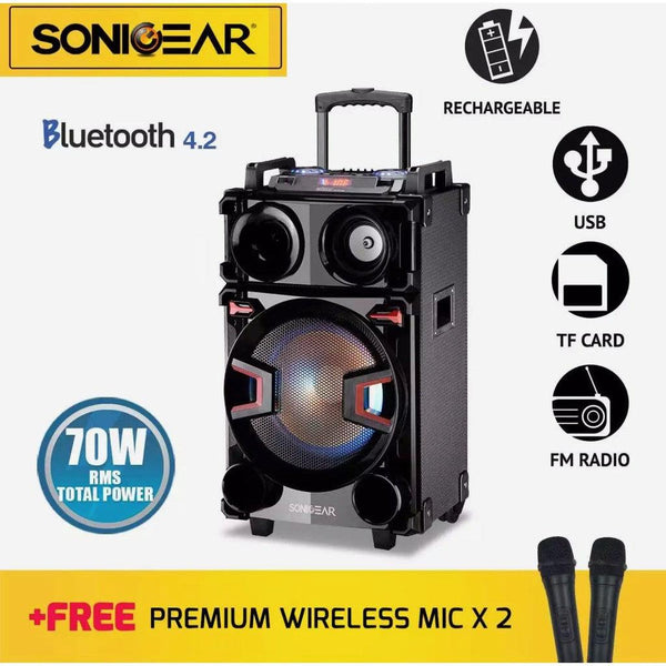 Life is too short to live without the SonicGear Bluetooth Powerful Portable Speaker (Free Wireless Mic x 2). Be happy. Be Content. Be Satisfied.
