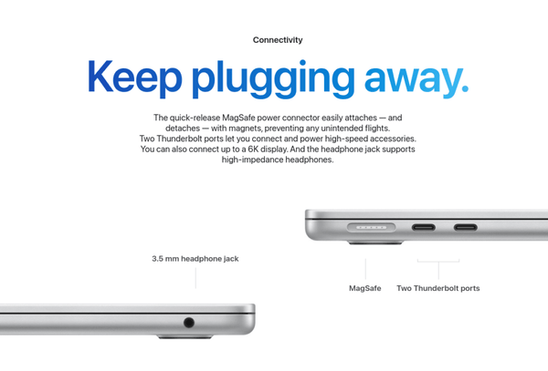 - • MagSafe 3 port, two Thunderbolt ports and headphone jack