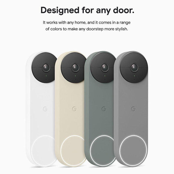 The Nest Doorbell is the battery-powered video doorbell that works with any home. See what’s happening at your door and answer it from anywhere. A taller field of view lets you see people from head to toe, or boxes on the ground. It has built-in intelligence that can tell the difference between people, packages, animals, and vehicles, and send alerts about what’s important to you. You can even use pre-recorded responses, like “You can just leave it. Thanks!” With 3 hours of free event video history, you can go back and see what you missed. And because there are no wires, you can install it yourself.