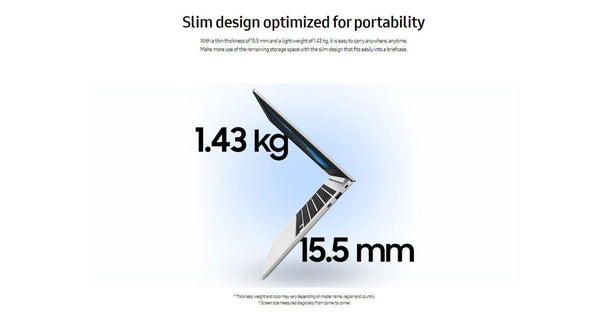 The laptop weighs just 1.43kg and is just 15.5mm thin.